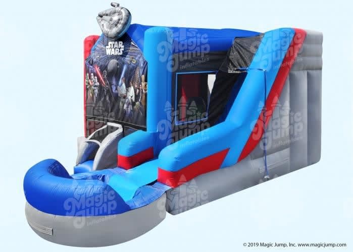 Courtesy of your friendly neighborhood web slinger comes Magic Jump's Official SPIDER-MAN 15' x 15' bounce house. It has plenty of space for up to 6 friendly neighborhood friends at a time to bounce, hop, skip, and jump to their heart's content. Made in the USA with premium materials by master craftsman, the SPIDER-MAN bounce house is designed with fully licensed digital artwork and the logo from Spidey’s uniform as embellishments on top of both front vertical pillars. It is a spectacular & amazing ride that is suitable for all occasions. This inflatable is compliant with the ASTM's revised standards (F2374-17) with additional safety features such as a safer entrance/exit ramp and emergency exit.